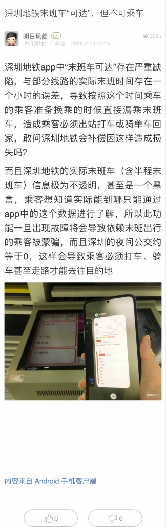 12. 帖文《深圳地鐵末班車“可達”,但不可乘車》