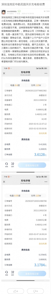 3. 帖文《深圳龍崗區(qū)中航花園天價充電樁收費》