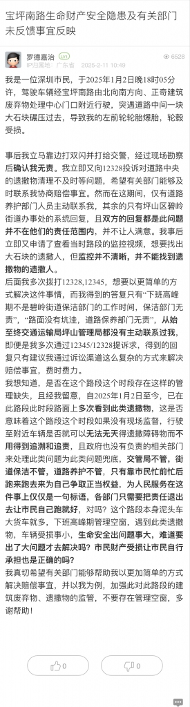 16. 帖文《關于龍崗區(qū)坂田街道(南順~雅寶)交通設施問題的投訴》