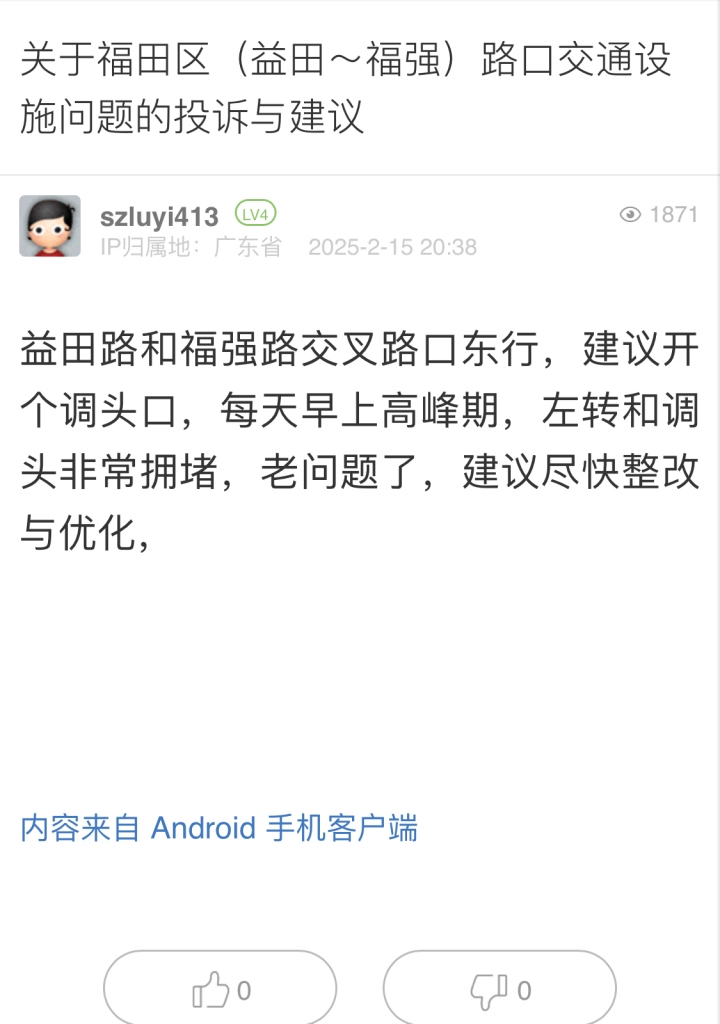 17. 帖文《關于福田區(qū)(益田~福強)路口交通設施問題的投訴與建議》
