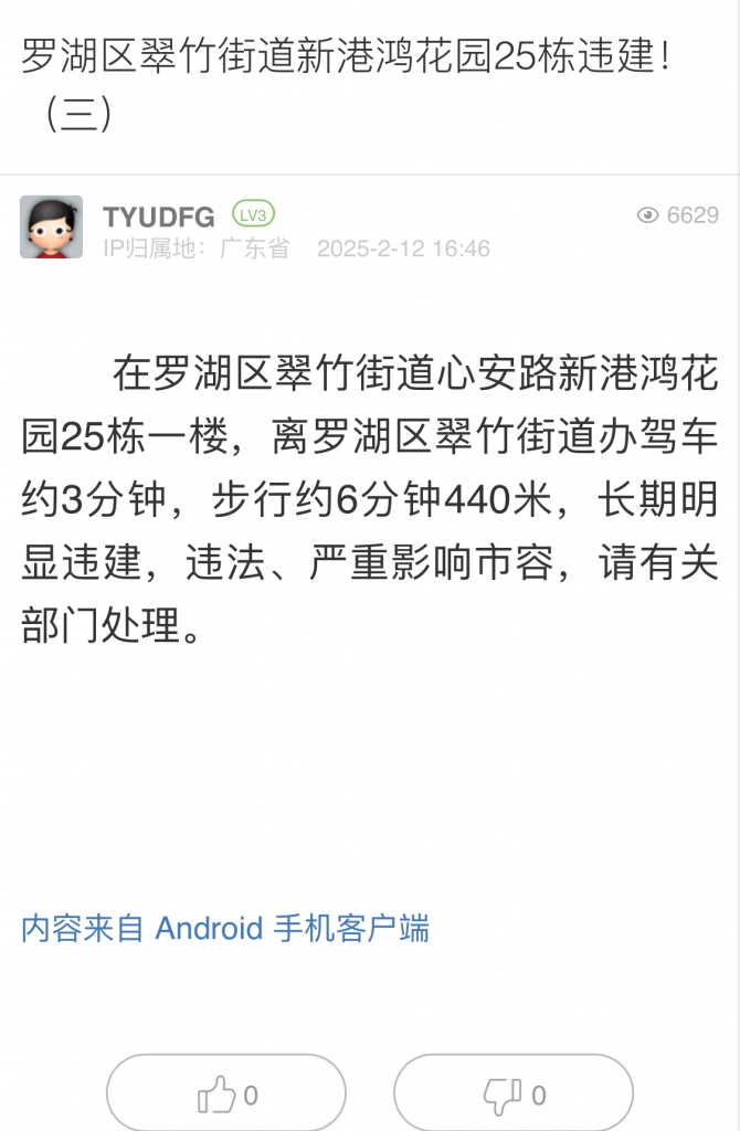 10. 帖文《羅湖區(qū)翠竹街道新港鴻花園25棟違建?。ㄈ?/a>》