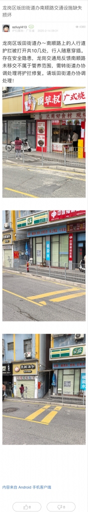 13. 帖文《龍崗區(qū)坂田街道辦南順路交通設施缺失損壞》