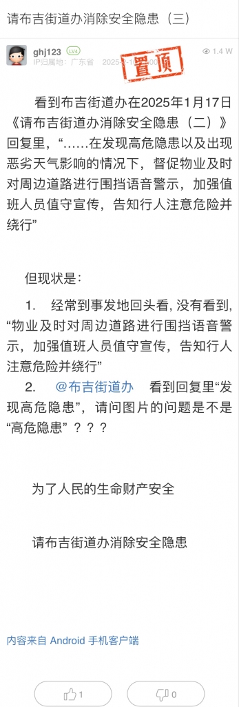 5. 帖文《請布吉街道辦消除安全隱患(三)》