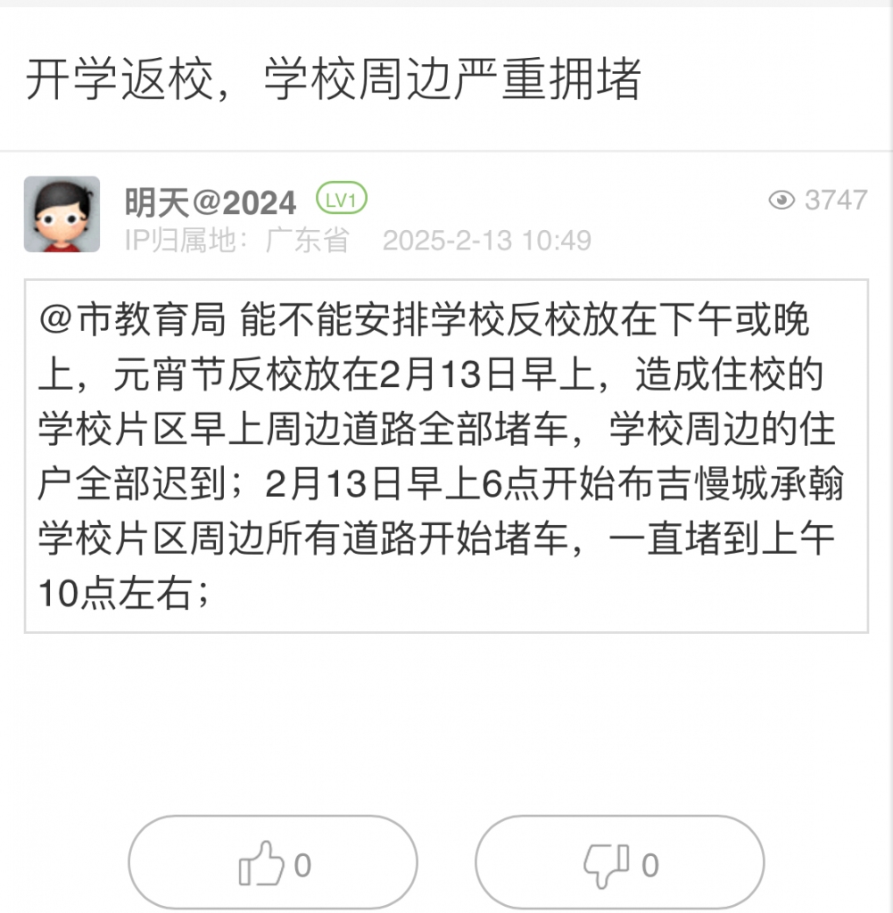 11. 帖文《開學返校,學校周邊嚴重擁堵》