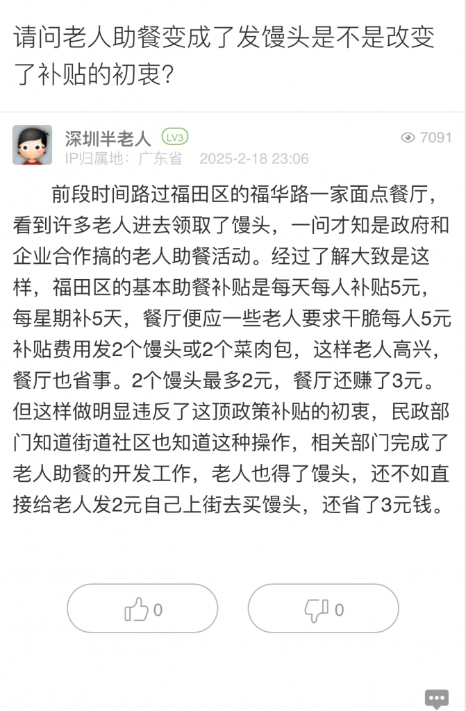 6. 帖文《請問老人助餐變成了發(fā)饅頭是不是改變了補(bǔ)貼的初衷?》