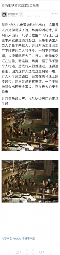 22. 帖文《步涌地鐵站B出口廣場舞》《步涌地鐵站B出口安全隱患》