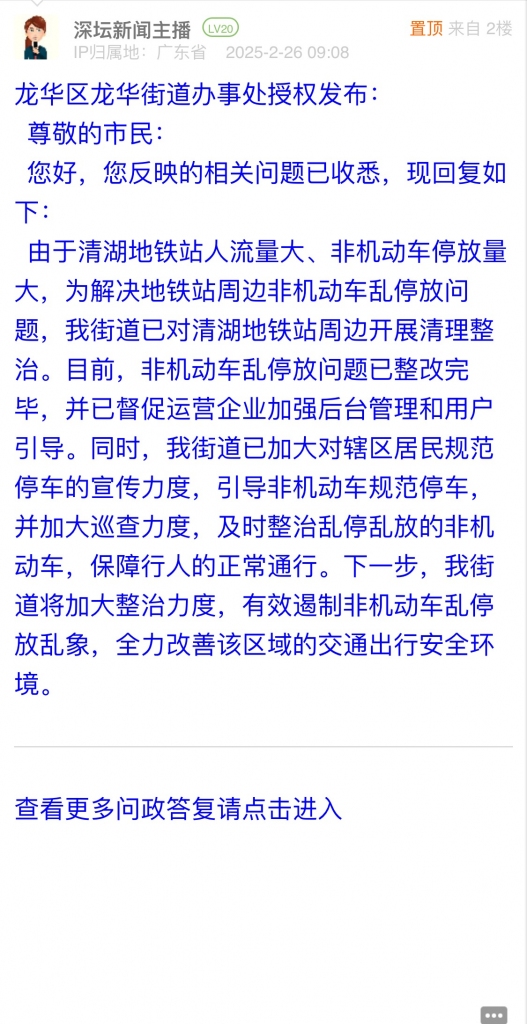 各職能單位如需對網(wǎng)友反映的問題進(jìn)行回應(yīng),可在深圳論壇注冊官方賬號并通過認(rèn)證,回帖進(jìn)行回應(yīng)。
