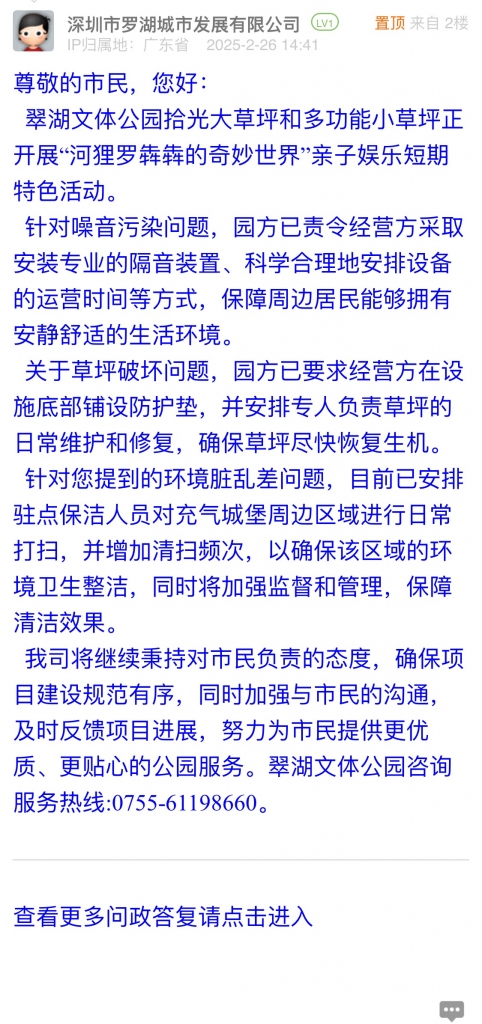 如想了解或反饋其他相關(guān)情況,可致電聯(lián)系我街道執(zhí)法隊(duì)(0755-83600740),感謝您的留言和對我街道工作的信任和支持。