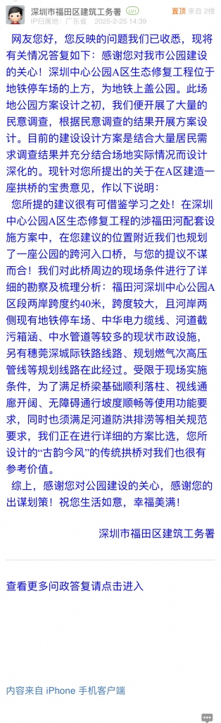 12. 帖文《深圳中心公園A區(qū)需要一座栱橋》