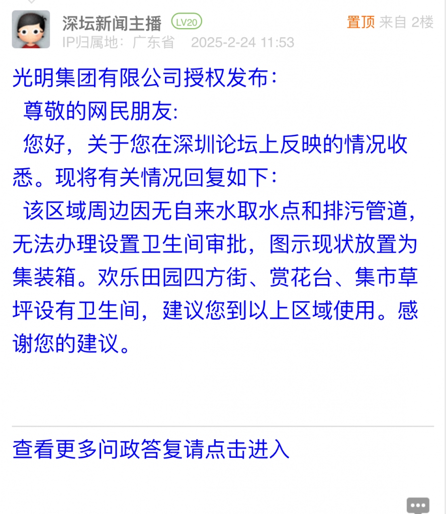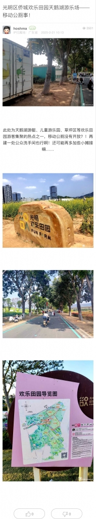 13. 帖文《光明區(qū)僑城歡樂田園天鵝湖游樂場——移動公廁事!》