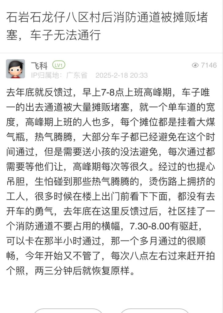 25. 帖文《石巖石龍仔八區(qū)村后消防通道被攤販堵塞,車子無法通行》