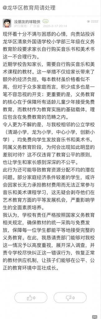 2. 帖文《@龍華區(qū)教育局請?zhí)幚?/a>》