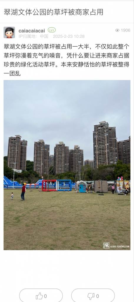 19. 帖文《翠湖文體公園的草坪被商家占用》