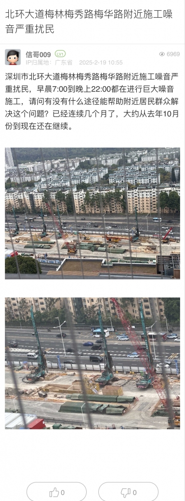 8. 帖文《北環(huán)大道梅林梅秀路梅華路附近施工噪音嚴(yán)重?cái)_民》
