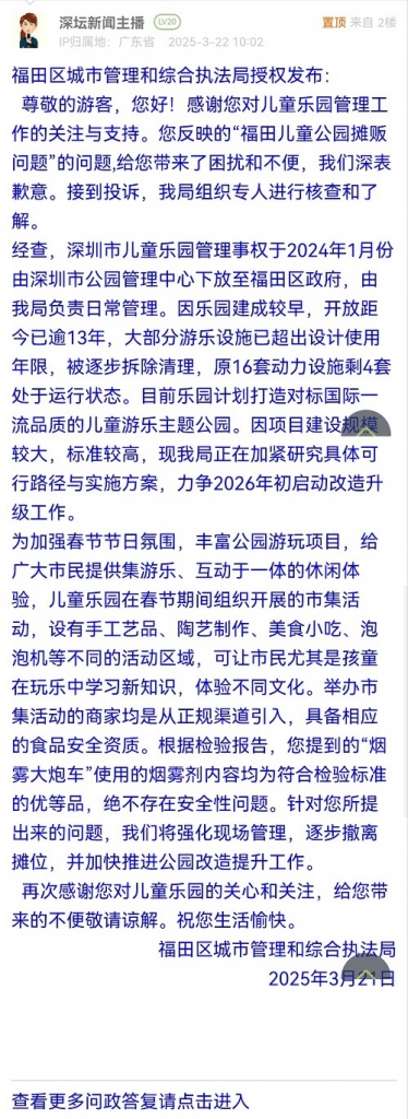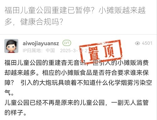 21. 帖文《福田兒童公園重建已暫停?小攤販越來(lái)越多,健康合規(guī)嗎?》