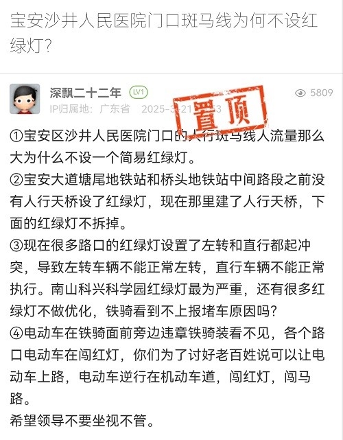 17. 帖文《寶安沙井人民醫(yī)院門(mén)口斑馬線為何不設(shè)紅綠燈?》