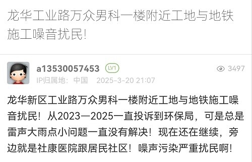 31. 帖文《龍華工業(yè)路萬(wàn)眾男科一樓附近工地與地鐵施工噪音擾民!》