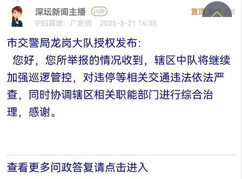 據(jù)統(tǒng)計(jì),2025年3月17日-2025年3月23日,網(wǎng)友在深圳論壇發(fā)布問(wèn)政類(lèi)帖文共46篇,得到相關(guān)單位正式回應(yīng)的帖文數(shù)為42篇,本期簡(jiǎn)報(bào)回應(yīng)速度最快的單位:市交警局寶安大隊(duì)、市生態(tài)環(huán)境局羅湖管理局、市交警局福田大隊(duì)、市交警局羅湖大隊(duì)、龍華區(qū)城市管理和綜合執(zhí)法局。