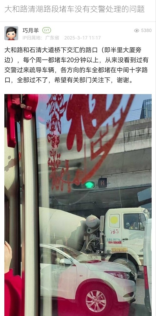 24. 帖文《大和路清湖路段堵車(chē)沒(méi)有交警處理的問(wèn)題》