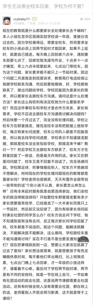 25. 帖文《學(xué)生無(wú)法乘坐校車(chē)回家,學(xué)校為何不管?》