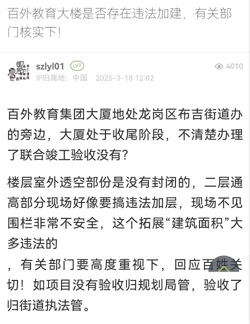 6. 帖文《百外教育大樓是否存在違法加建,有關(guān)部門(mén)核實(shí)下!》