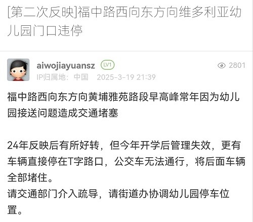 12. 帖文《[第二次反映]福中路西向東方向維多利亞幼兒園門(mén)口違停》