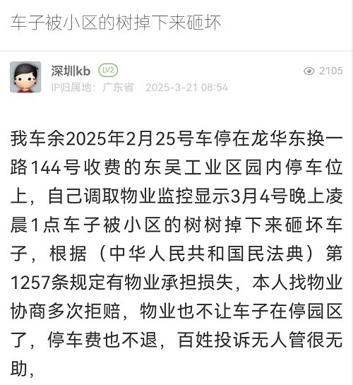 32. 帖文《車(chē)子被小區(qū)的樹(shù)掉下來(lái)砸壞》