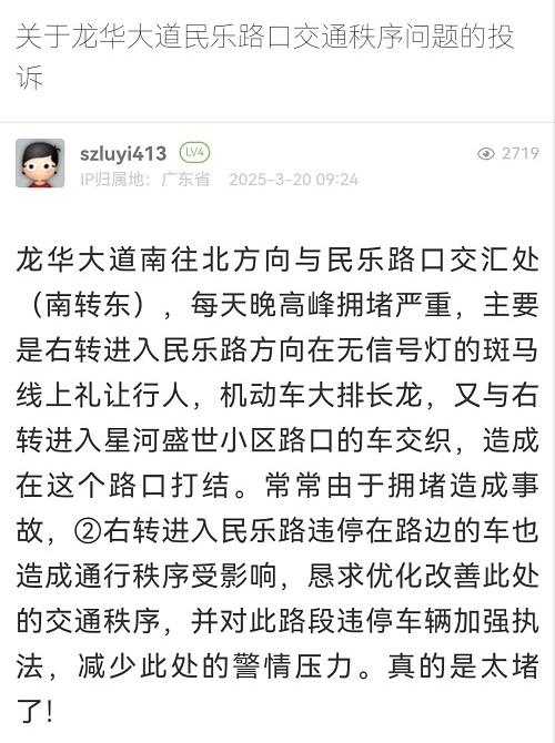 26. 帖文《關(guān)于龍華大道民樂(lè)路口交通秩序問(wèn)題的投訴》
