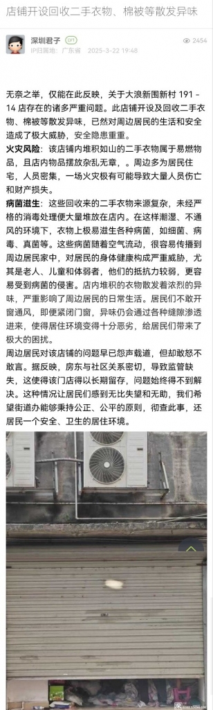 29. 帖文《店鋪開(kāi)設(shè)回收二手衣物、棉被等散發(fā)異味》