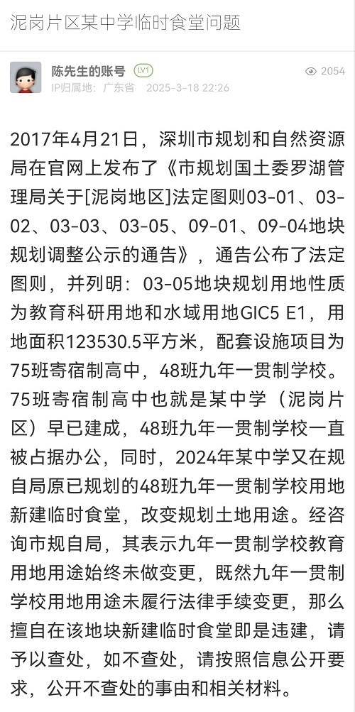 8. 帖文《泥崗片區(qū)某中學(xué)臨時(shí)食堂問(wèn)題》