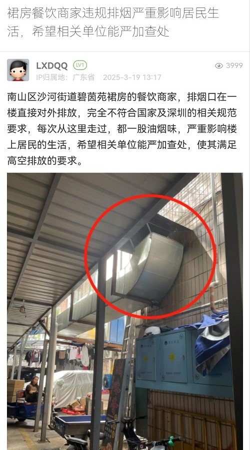 10. 帖文《裙房餐飲商家違規(guī)排煙嚴(yán)重影響居民生活,希望相關(guān)單位能?chē)?yán)加查處》