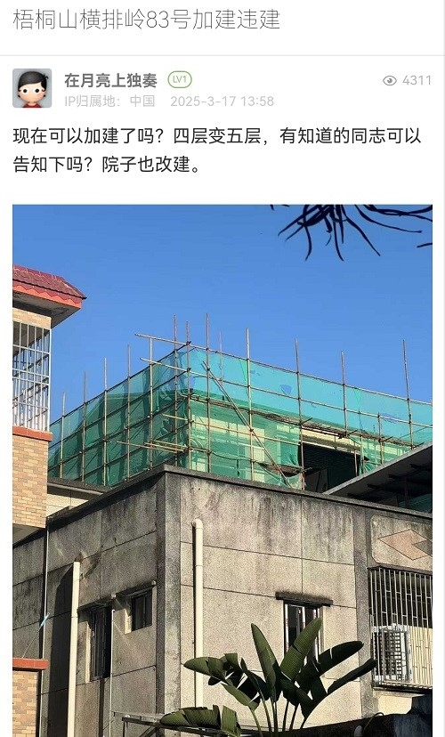 4. 帖文《梧桐山橫排嶺83號(hào)加建違建》