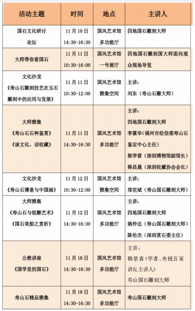 不僅如此,來自四地的國家級、省級工藝美術大師、非物質文化遺產(chǎn)傳人將親臨深圳, 展覽期間,舉辦名家對話論壇,開設兩場名石雕刻藝術公開講座,另逢周末將特邀兩位國石大師在現(xiàn)場為觀眾導賞。