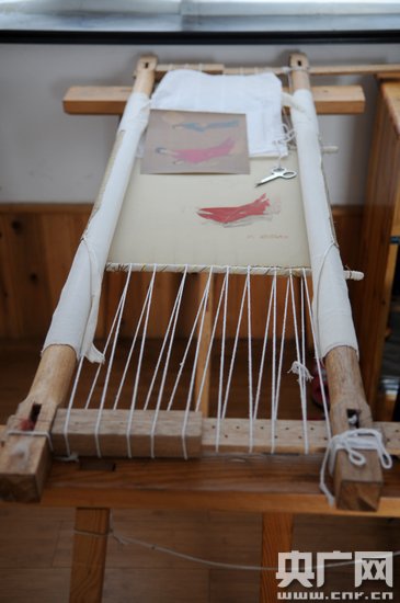 顧繡繃架與繡面(圖片由上海市松江區(qū)非遺保護(hù)分中心提供)