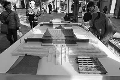 參加故宮“文化+科技”國際論壇的嘉賓在故宮數(shù)字所參觀3D打印的微縮紫禁城。記者 李繼輝攝