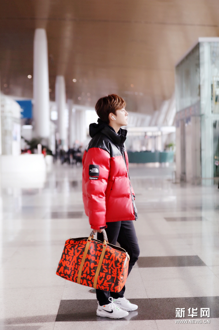 徐海喬機(jī)場(chǎng)秀大長(zhǎng)腿 紅色羽絨服個(gè)性時(shí)髦