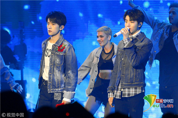 ??? 北京,12月12日晚,王俊凱、易烊千璽現(xiàn)身某活動,兩人身穿牛仔外套獻唱嗨翻全場,又換上紅色衛(wèi)衣舉廣告宣傳標語