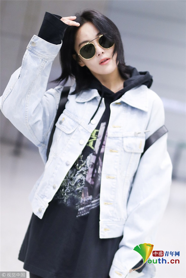 2017年12月13日,上海,張馨予現(xiàn)身機(jī)場,穿連帽衣顯清爽,剪短發(fā)架黑超形似王菲,歪頭撩發(fā)又帥又酷。