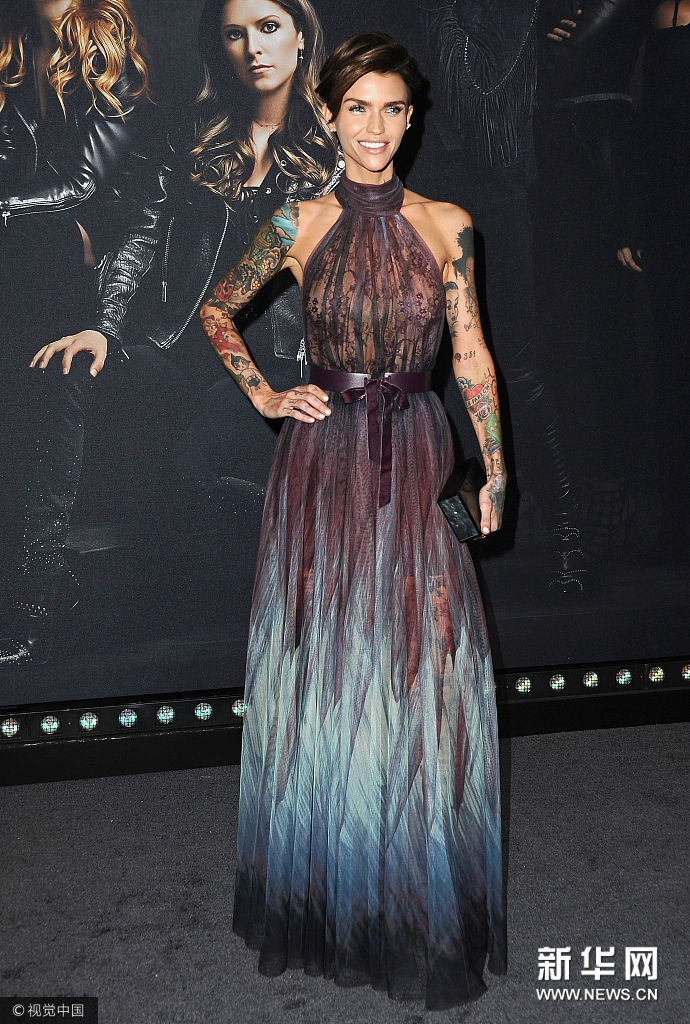 魯比·洛斯?jié)u變深紫色削肩長(zhǎng)裙 盡顯熟女氣質(zhì)