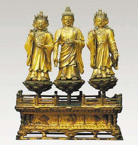 中國與佛教文化的聯(lián)系,在生活上,在文化上,在思想上,近年來在藝術(shù)品拍賣場上體現(xiàn)得尤為明顯。僅就2017年,春秋大拍期間各大拍賣場上就頻頻傳出佛造像拍賣過千萬乃至億元的喜訊。2017年3月15日,在佳士得紐約亞洲藝術(shù)周“宗器寶繪-藤田美術(shù)館藏中國古代藝術(shù)珍品”拍賣場上,北魏孝昌二年(公元526年) 比丘法興造釋迦三尊黃花石像以584.75萬美元成交。6月7日,北京保利2017春拍“自在菩提-中國金銅佛造像、唐卡”專場上,14-15世紀大隨求佛母以3000萬元落槌,加傭金以3450萬元成交。2017年6月8日,北京東正2017年春拍“皇家長物”專場上,清乾隆紫金璃瑪無量壽佛坐像以3400萬元落槌,加傭金3910萬元成交;而在“波若-佛教藝術(shù)”專場上,十四世紀銅鎏金白度母像以2300萬元成交。6月20日晚,在中國嘉德2017春拍“旃檀林-佛教藝術(shù)集萃”專場上,西藏11-12世紀合金銅釋迦牟尼佛站像以5100萬元落槌,加傭金以5865萬元成交。