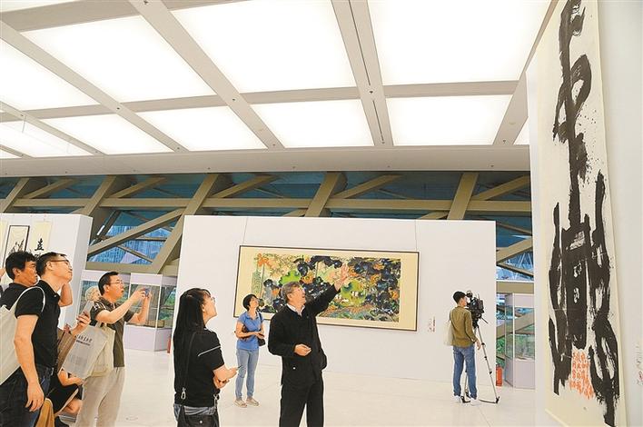 重彩渲染的荷花、古樸典雅的篆刻、清奇的水墨、雄渾的書法……一場(chǎng)別有風(fēng)味的海派藝術(shù)大展——“不逾矩不——韓天衡書畫印展”于今日在深圳市當(dāng)代藝術(shù)與城市規(guī)劃館舉行。