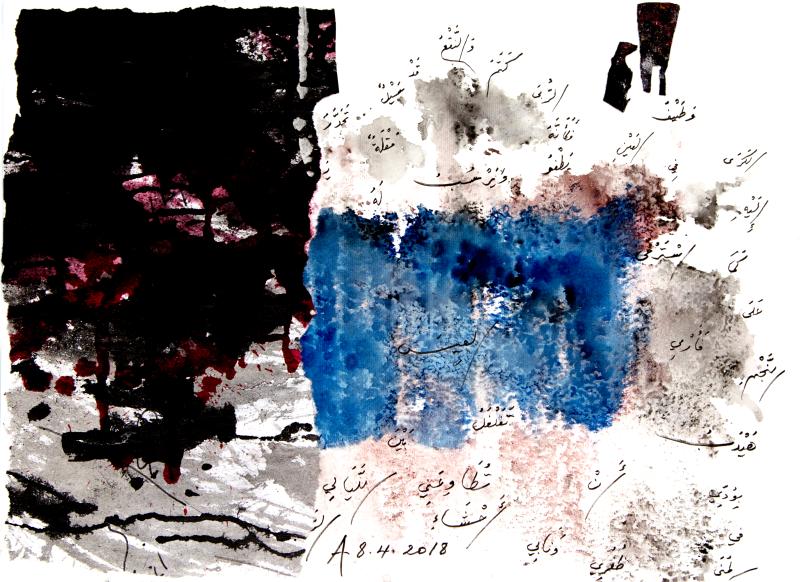 他的這種藝術(shù)實(shí)踐也可追溯至維克多·雨果(Victor Hugo)的繪畫,或進(jìn)一步,追溯至對(duì)其產(chǎn)生重大影響的超現(xiàn)實(shí)主義者那 —— 眾所周知,他們通過詩(shī)歌打開人類的感性,就像蘇菲主義,讓人沉浸在充滿詩(shī)意、超越一切的忘我境界。一切既相關(guān),又都未完成。阿多尼斯的每件拼貼-繪畫-手稿,都是詩(shī)人向我們發(fā)出的一個(gè)小小宣言,呼吁一種更開放、更含蓄、更微妙、更深刻、更感官、更有思想、更個(gè)性化、更政治化、更即時(shí)、更能持久的詩(shī)歌藝術(shù)。