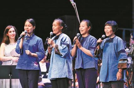 伴隨女書歌聲,在豎琴演奏家米拉·法爾卡什的彈奏和深圳交響樂團的共同演奏下,《女書》用音樂與畫面表現(xiàn)出來,帶給觀眾非一般的音樂體驗。最為驚喜的是,現(xiàn)場還邀請到4位女書傳承人上臺,為觀眾清唱了一段原汁原味的女書歌。