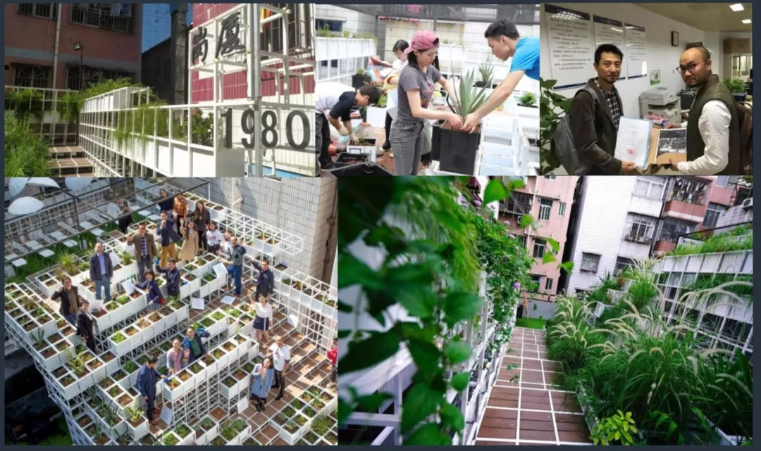 來自本地智慧的聯(lián)合創(chuàng)始人謝克非先生介紹說,作為城中村改造的實踐者,我們在做就是如何在這些矛盾中獲得共生?;蛘哒f,如何把所有矛盾點結(jié)合起來,讓城中村可以可持續(xù)地發(fā)展。所以在2018年3月聯(lián)合大自然保護(hù)協(xié)會(TNC)、桃花源生態(tài)保護(hù)基金會、深圳市城市規(guī)劃設(shè)計研究院、聯(lián)合公設(shè)發(fā)布了綠色天臺:愚公計劃2.0——崗廈1980海綿城市綠色屋頂示范項目。這個綠植天臺不僅是能夠美化環(huán)境,截存雨水、循環(huán)灌溉綠植等,更重要的是我們希望它作為一個平臺,把NGO的理念注入城中村,讓大家把對城中村的注意力從貧富懸殊、拆遷轉(zhuǎn)移到綠色環(huán)保,促進(jìn)可持續(xù)的發(fā)展。這里不僅是個景觀的平臺,更是內(nèi)容發(fā)動機(jī),能夠持續(xù)地產(chǎn)生更多的內(nèi)容。通過藝術(shù)、教育、公益等不同板塊的活動,以內(nèi)容的方式,把文化、環(huán)保、可持續(xù)發(fā)展等的信號不斷在這個點上發(fā)散出去,讓大家重新認(rèn)識城中村,從持續(xù)性的內(nèi)容信息實現(xiàn)社區(qū)營造,服務(wù)不同階層的人,讓更多人覺得環(huán)保、教育這件事情其實是非常有趣的,不生硬的,大家會主動繼續(xù)攜手服務(wù)社區(qū)。