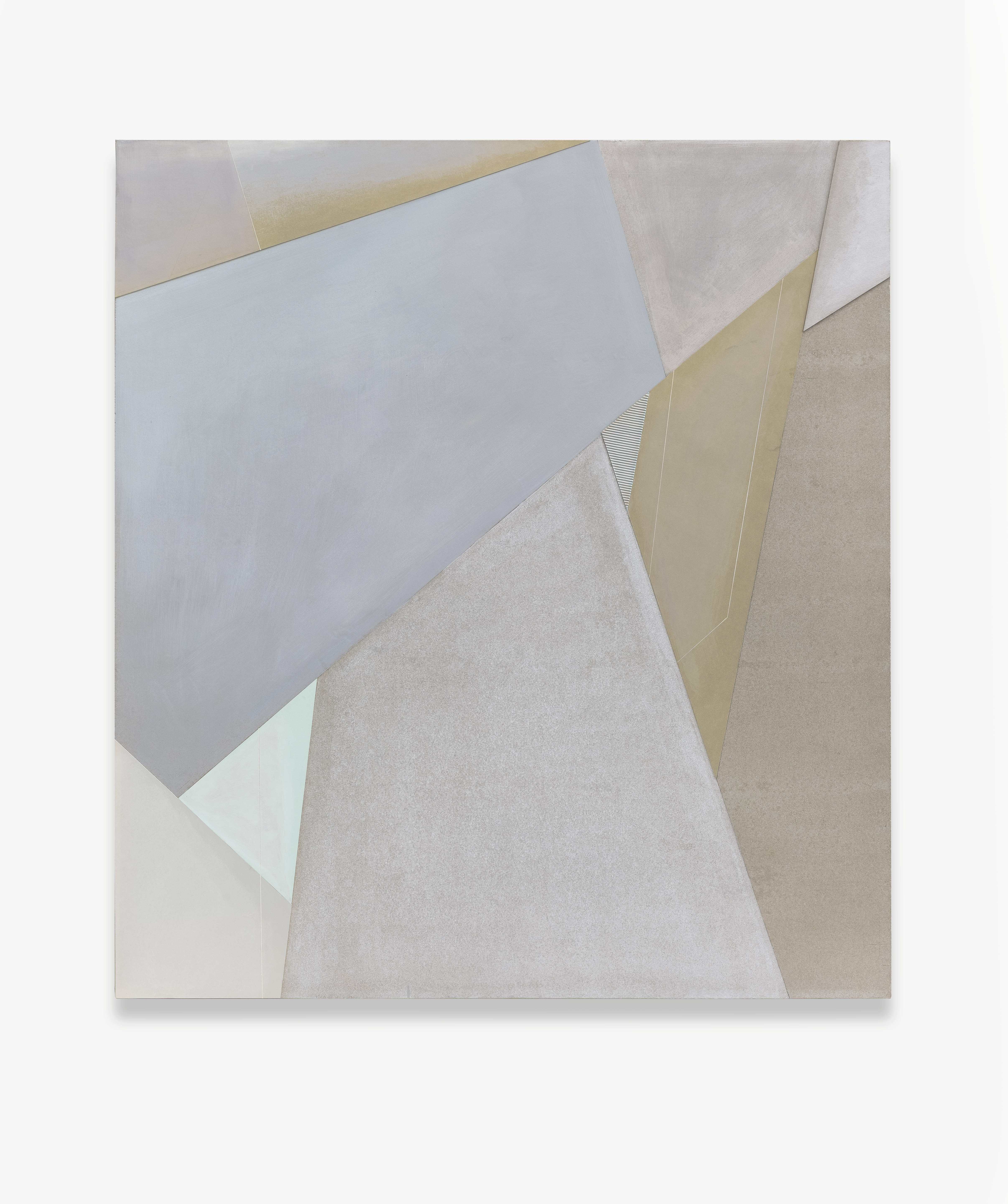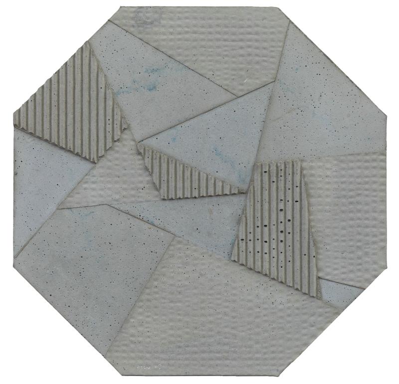 自2013年王豪開始以水泥作為個(gè)人創(chuàng)作媒介以來(lái),三個(gè)系列“寂”、“樸”、“遠(yuǎn)”并行展開?!凹拧焙汀皹恪睆?qiáng)調(diào)水泥作品的靜態(tài)特征,不論是單件作品還是多件組合作品,在水泥材料的細(xì)微變化與色塊搭配上,力求傳達(dá)出一種寧?kù)o、樸拙的整體氣息;“樸”系列在形式上更為豐富,不僅嘗試使用斜線、三角形乃至圓形,還探索富于中國(guó)古典韻味的形式表達(dá)(例如對(duì)中國(guó)古代手卷的模擬);“遠(yuǎn)”系列的名稱則來(lái)源于中國(guó)傳統(tǒng)山水繪畫所特有的透視技法“三遠(yuǎn)”概念,這系列作品意圖通過(guò)畫面的動(dòng)態(tài)表現(xiàn)打破二維空間限定,拓展平面繪畫的深度與廣度,從美學(xué)意境上與高遠(yuǎn)、深遠(yuǎn)、平遠(yuǎn)相融合。