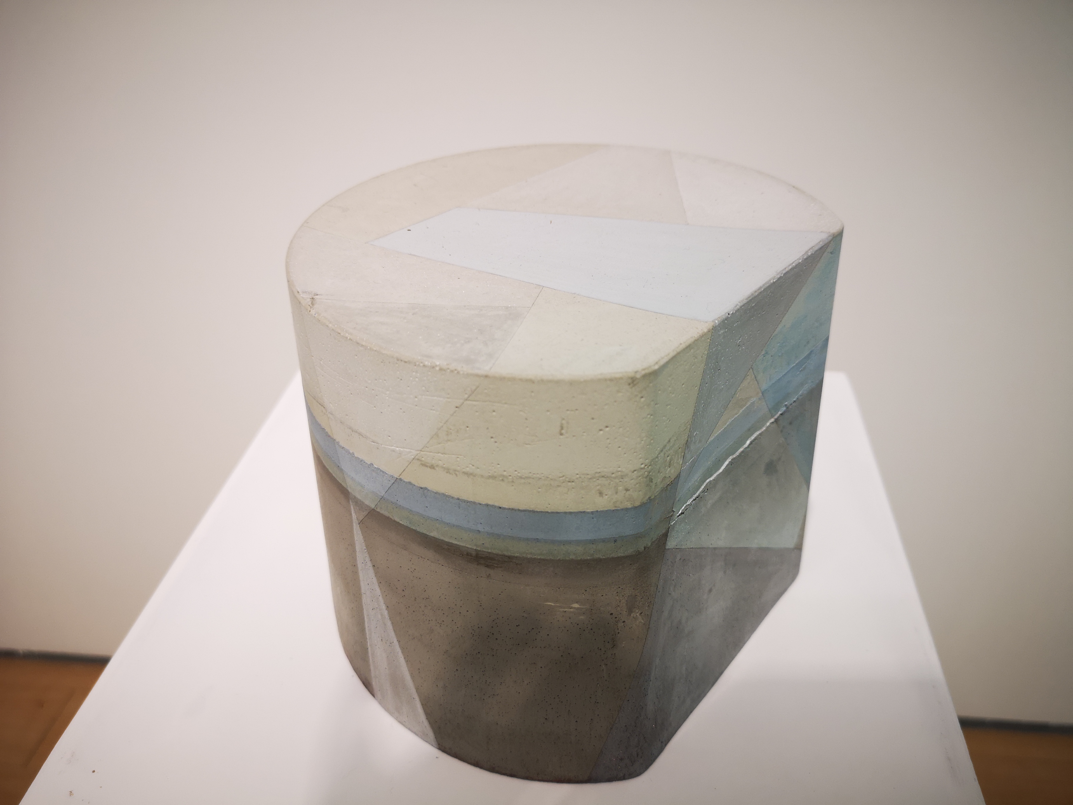 自2013年王豪開(kāi)始以水泥作為個(gè)人創(chuàng)作媒介以來(lái),三個(gè)系列“寂”、“樸”、“遠(yuǎn)”并行展開(kāi)?!凹拧焙汀皹恪睆?qiáng)調(diào)水泥作品的靜態(tài)特征,不論是單件作品還是多件組合作品,在水泥材料的細(xì)微變化與色塊搭配上,力求傳達(dá)出一種寧?kù)o、樸拙的整體氣息;“樸”系列在形式上更為豐富,不僅嘗試使用斜線、三角形乃至圓形,還探索富于中國(guó)古典韻味的形式表達(dá);“遠(yuǎn)”系列的名稱則來(lái)源于中國(guó)傳統(tǒng)山水繪畫(huà)所特有的透視技法“三遠(yuǎn)”概念,這系列作品意圖通過(guò)畫(huà)面的動(dòng)態(tài)表現(xiàn)打破二維空間限定,拓展平面繪畫(huà)的深度與廣度,從美學(xué)意境上與高遠(yuǎn)、深遠(yuǎn)、平遠(yuǎn)相融合。