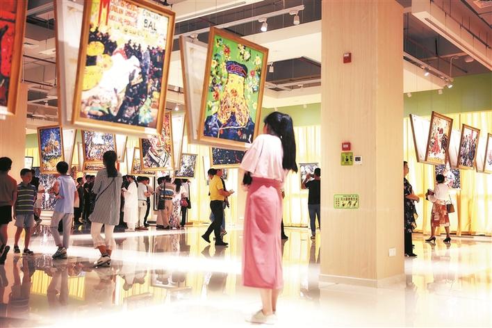 活動現(xiàn)場,他跟隨著視頻音樂手舞足蹈,一邊跳舞一邊創(chuàng)作,不一會兒,一幅生動逼真的藝術(shù)畫作呈現(xiàn)在大家眼前。黃鳳榮介紹,“再創(chuàng)世界名畫100”是通過自己的表現(xiàn)手段,把世界名畫挑100幅出來重新演繹。這種演繹既保留它原來的面貌,同時又有新的元素注入。本次展覽共展出了106幅黃鳳榮的拼貼畫,作品以彩色貼紙作為主要材料,有蒙娜麗莎、街景、人物、植物等,每一幅都給觀眾不一樣的視覺沖擊。