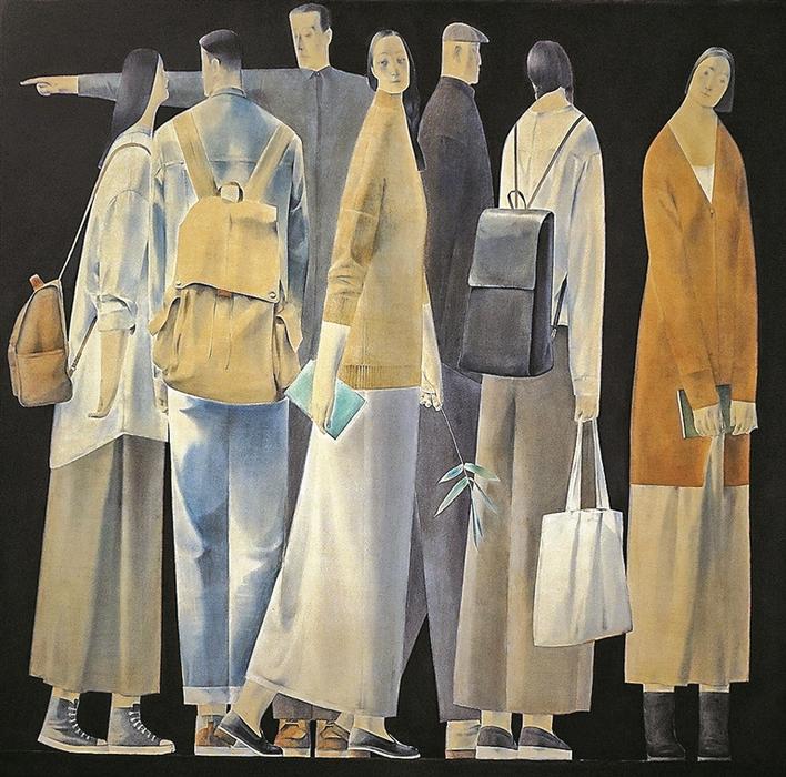 梁國輝的《新生》體現(xiàn)出一種新的圖像構(gòu)建的可能性,塑造出的人物形象具有生動(dòng)的情感和鮮明的個(gè)性;涂蓉蓉的《鏗鏘之音》以抽象的表現(xiàn)方式讓我們感到“無形”和“有形”之間的微妙關(guān)系;王彪的《收工之八十六》展現(xiàn)其寫實(shí)功底,并致力于探索如何用更加多元的藝術(shù)語言來表達(dá)自己的感受。