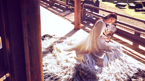 何穗手插口袋御寒戴白色羽絨帽喜感足