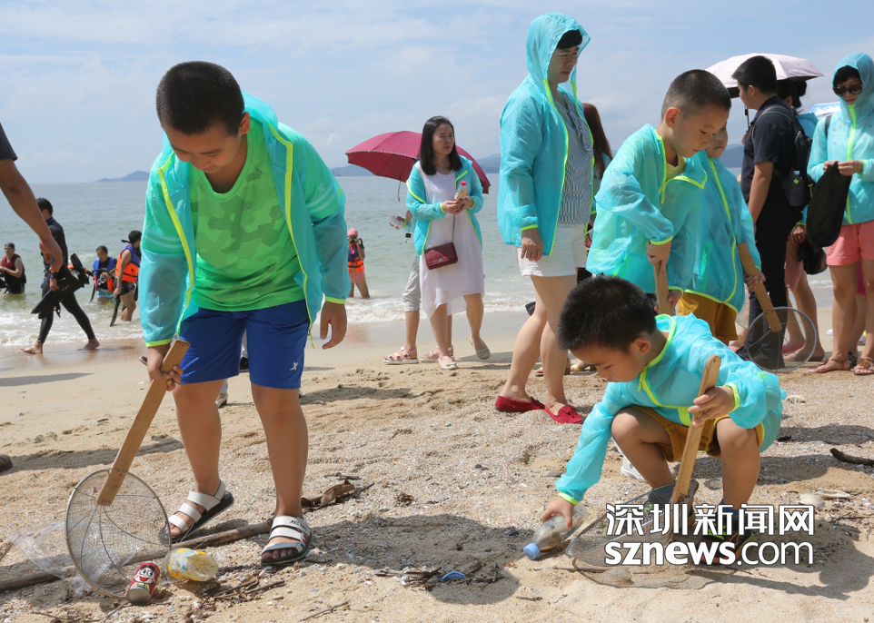 在當天的活動中,小朋友們除了學習海洋生物知識外,還在義工的帶領(lǐng)下,對梅沙一處公共沙灘進行了一次公益大清潔,踐行自己的環(huán)保公益誓言。小朋友們和家長一起合作,通過工具將海草、啤酒瓶、塑料袋等垃圾撿走。不到一個小時,便將2公里的沙灘清理干凈。
